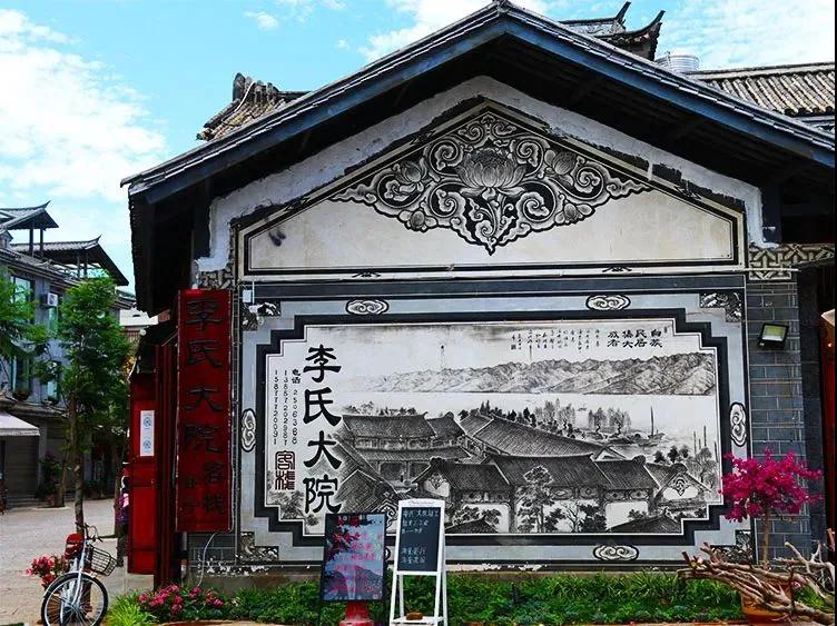 李氏大院是白族傳統(tǒng)民居“四合五天井”的典型建筑,有大門,后門,四方有四幢樓房合在一起,每?jī)纱狈恐g有一小天井,院心為大天井,共有五個(gè)天井,大門為三滴水造型,雕梁畫棟,飛檐翹角,彩畫以文房、詩(shī)書(shū)、花鳥(niǎo)、山水、蟲(chóng)魚(yú)為主,充分體現(xiàn)房主人的意愿和家風(fēng)。