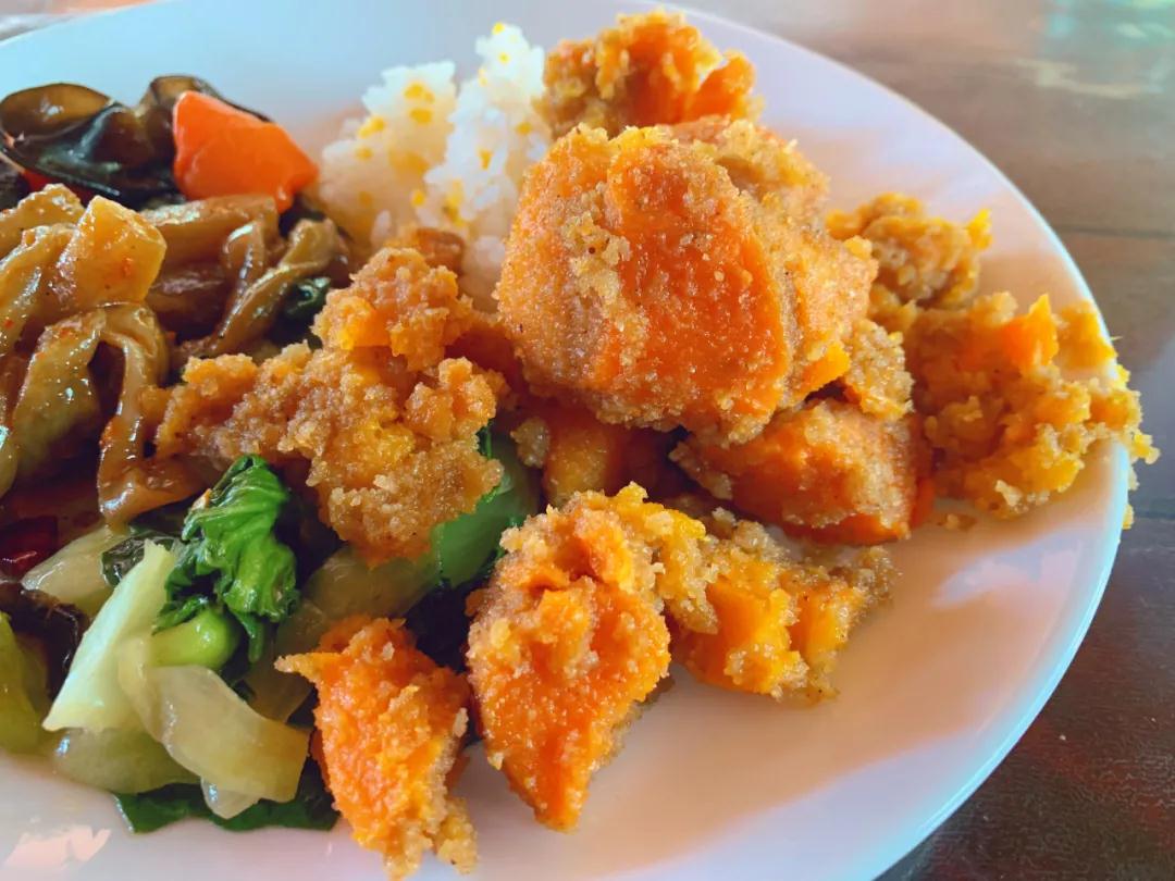 值得推薦的是這里的齋飯,20元自助餐,這個粉蒸南瓜簡直一絕!
