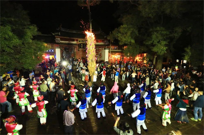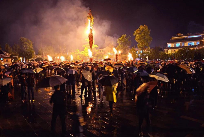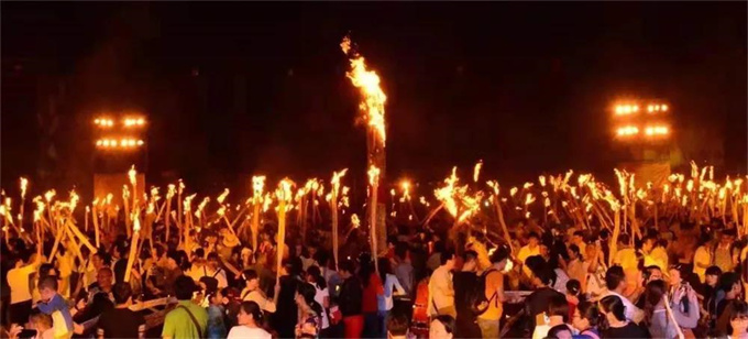 在云南省大理白族自治州,火把節(jié)是每一個大理人心中割舍不了的鄉(xiāng)愁,無可替代。彝族火把節(jié),于每年農(nóng)歷六月二十四日舉行,主要活動有點火把、打歌狂歡。按習(xí)俗,當(dāng)天要把出嫁的姑娘接回來過節(jié)。白天,家家戶戶都要殺雞、宰羊,置酒肴敬奉天地,以求人、畜、莊稼順?biāo)臁M砩?,點燃火把以示豐收喜慶。