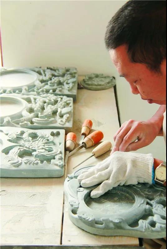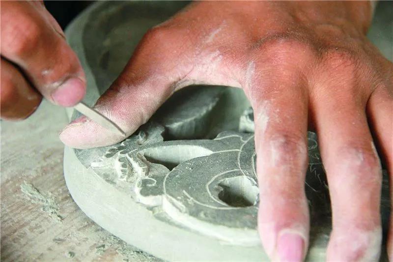 精細(xì)的雕刻與打磨過程最考驗制硯人的工藝,也需要耗費大量的時間,要經(jīng)歷“粗雕——粗打磨——細(xì)雕——細(xì)打磨”4個工序。“一刀準(zhǔn)、二刀狠、三刀平、四刀細(xì)”是雕刻的口訣。“意指下刀要精準(zhǔn),去除冗余石材,力道不能過輕或者過重,刀工要細(xì)膩精致?!睆堒S堂介紹,為追求造型和線條的流暢,一方普通大小的硯臺需要用砂紙細(xì)致地打磨半天,但這還不是最難的?!白铍y的是微雕,要求把硯臺上最微小的細(xì)節(jié)處理完美,例如人物的眉毛、胡須、衣紋,務(wù)求生動細(xì)膩?!?br />