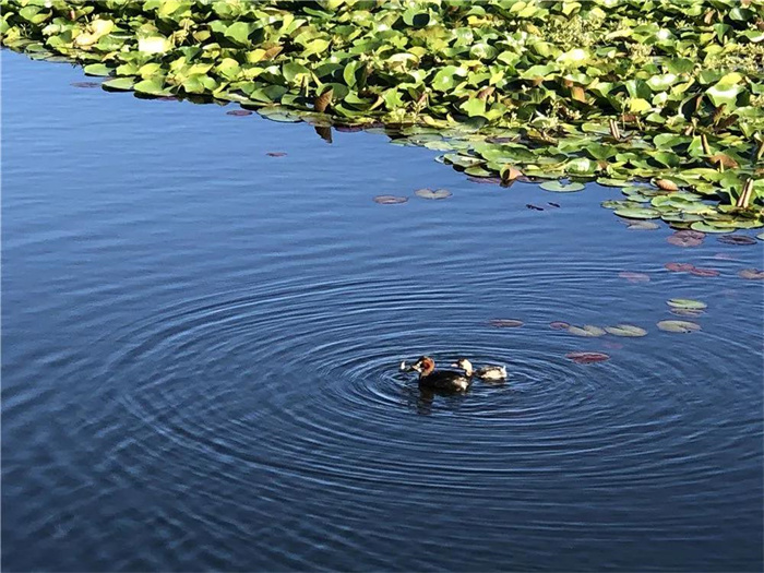 湖面碧波蕩漾,水鳥(niǎo)嬉戲
