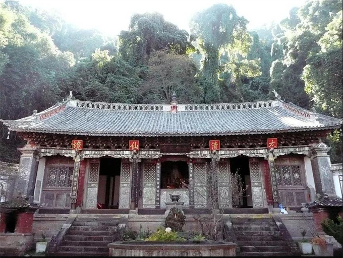 唐代中期,南詔國極力倡導(dǎo)佛教,雖然巍寶山仍是大理地區(qū)的主要道場(chǎng),但佛教成分也滲透到巍寶山,有觀音殿、甘露亭等佛教寺院,形成了佛道兩種教派相互吸收、相互融合的特點(diǎn)。道觀分布于前山和后山,前山綿亙疊嶂,宮觀多藏于密林之中,以建筑規(guī)模宏大而著稱;后山險(xiǎn)峻陡峭,廟宇多依山勢(shì)顯露于巖壁之間。這種有藏有露的建筑布局,體現(xiàn)了道家思想"道德自然"的特點(diǎn)。這些尚保存完好的古建筑群,成為研究南方道教思想和建筑藝術(shù)的重要實(shí)物。其中,長(zhǎng)春洞古建筑群屬全國重點(diǎn)文物保護(hù)單位。二是道教在巍寶山還兼收了土著民族的原始宗教的成分。巡山殿便是這一特征的代表。