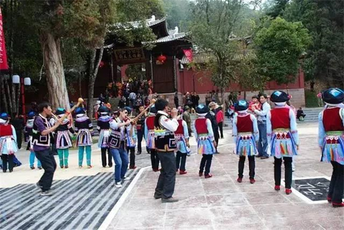 宮觀依山就勢(shì),布局巧妙,出閣架斗,工藝精湛,雄渾古雅,雕塑形象逼真?zhèn)魃?,雕刻壁畫和圖案豐富多姿,具有濃厚的宗教色彩和民族特色。這里的彝族同胞至今還流傳著與南詔有關(guān)的傳說——"老君點(diǎn)化細(xì)奴邏",使巍寶山增添了神秘的宗教氣氛,成為云南最大的道教名山和著名的風(fēng)景旅游地,如今又恢復(fù)了洞經(jīng)音樂樂奏會(huì)和彝族歌會(huì),使這座名山更加璀璨。