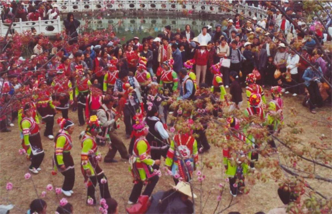 除了濃郁的宗教風(fēng)格造就了“巍寶仙蹤”之外,山中的奇景還形成了有名的巍山八大勝景:拱城遠(yuǎn)眺、天門鎖勝、美女瞻云、龍池秋月、山茶流紅、鶴樓古梅、朝陽育鶴、古洞長(zhǎng)春。有關(guān)勝景,這里還有一個(gè)神話故事,相傳,八仙之一的何仙姑路過此地時(shí),恰逢彩云顯現(xiàn),美麗的云景使她芳心大動(dòng),便不禁臥下仰望云景。后來,在何仙姑躺過的地方長(zhǎng)出了三座呈“美女仰臥”形狀的山峰,仙姑不慎失落的珍珠則化作了中央的水池,形成了“美女瞻云”的絕景。巍寶山還是彝族民俗活動(dòng)的重要場(chǎng)所,每年農(nóng)歷二月十三日至十五日的巍寶山歌會(huì)便聚集于此,成為附近彝族青年男女的狂歡節(jié)。