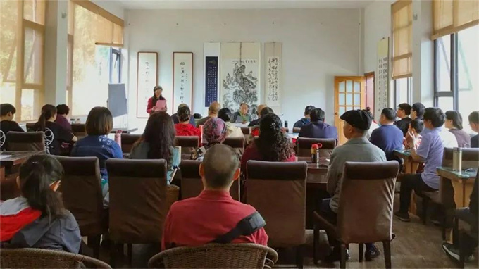 “李元陽的時代離我們遠(yuǎn)去久矣,但大理的山水自然還在,讀書人的文脈還在。”2015年,當(dāng)陽和茶場旁的一片殘垣老屋面臨轉(zhuǎn)型改建時,李云珠心里的種子終于發(fā)芽,“建一所書院,名字就叫元陽書院”的想法幾乎就在不假思索中落地。“元陽國學(xué)館”“書法傳習(xí)館”“大理市文藝創(chuàng)作基地”“大理老年大學(xué)元陽書院分?!毕嗬^在此掛牌。建院以來,元陽書院持續(xù)舉辦學(xué)術(shù)研討、經(jīng)典誦讀、書法、繪畫交流等活動,聘請大理大學(xué)退休教師及專業(yè)文化人士每月開辦文津講壇,公眾可免費參與。