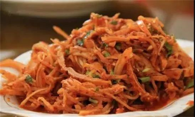 一種是將腌菜、萵筍絲、白蘿卜絲、蔥、姜、蒜、芫荽、燉梅、醬油、辣椒、香料等與生皮生肉拌勻,直接做成一道涼拌菜。兩種吃法各有各的特色和口感。