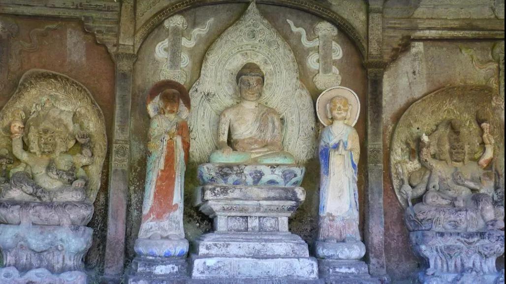 石鐘山石窟又稱劍川石窟,位于石鐘山上,石窟造像始鑿于南詔時期,雕刻精美,可以和敦煌媲美,被人們稱為"北有敦蝗,南有劍川"。